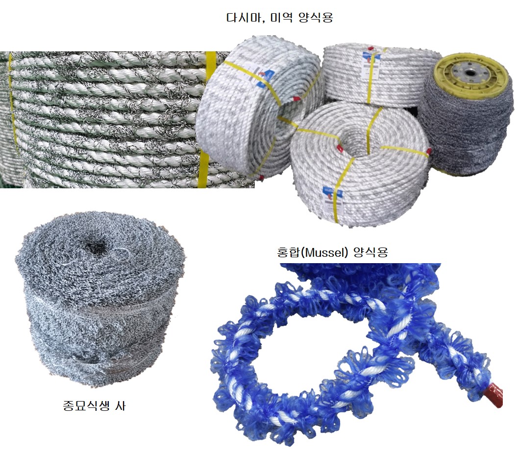 - 특허(제10-1324571호)제품으로 각종 양식에 적합하며 특히 홍합 등 패류의 수하식 양식 및 해조류(다시마. 미역 등 각종 해조류) 양식에 특화된 제품이다.