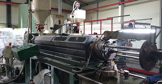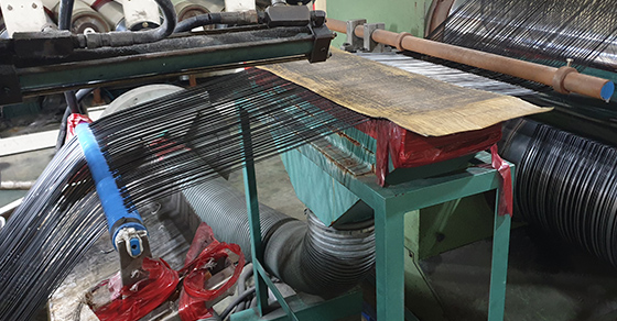 혼합된 원료(Resin)를 물성기준에 따라용융시켜다공의 다이스를 이용하여 실(yarn)를 방사