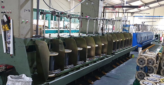 완성된 실(yarn)를 보빈(실패)에 권취하는 단계