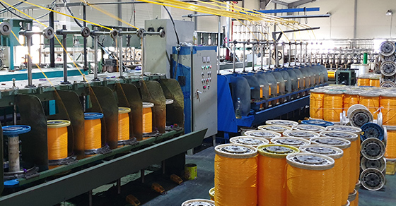 완성된 실(yarn)를 보빈(실패)에 권취하는 단계