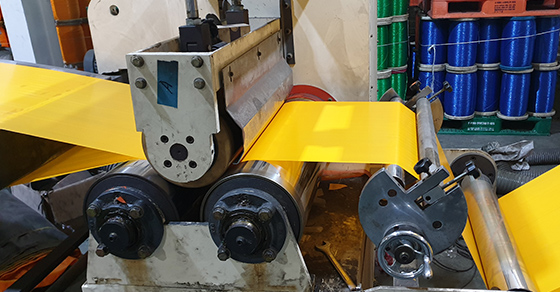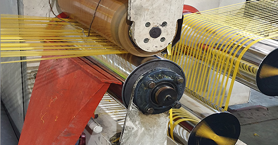 슬리팅된 yarn을 Press Roll을 구동시켜 얀을 이동시킴